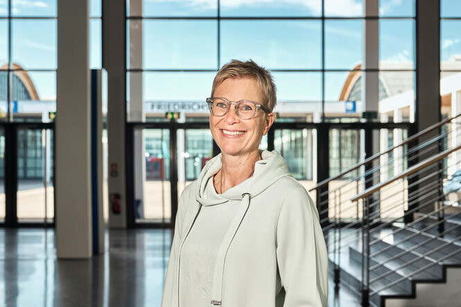 Die Dynamik und die Vielseitigkeit ihres Arbeitsfelds spiegelt sich auch in ihrem Lieblingsort auf der Messe wider: Dem Konferenzzentrum Ost mit angrenzendem Foyer. Aus Ina sprudelt es nur so heraus: „Das Foyer Ost ist für mich ein außerordentlich gelungenes Bauwerk. Mich begeistert, wie viele verschiedene Gestaltungsmöglichkeiten es bietet.“ Das quadratische, mit Säulen gesäumte Gebäude beeindruckt nicht nur durch die umlaufende Empore, von der man das Messegeschehen im Foyer beobachten kann. Das geometrische Dach aus Glas, Stahl und Holz vermittelt das ganz besondere Ambiente des Geländes. „In diesem Foyer haben schon so unterschiedliche Veranstaltungen stattgefunden und man sieht, was mit Kreativität und Einfallsreichtum alles möglich ist,“ schwärmt Ina. Ihre Begeisterung für die Architektur des Gebäudes ist ansteckend und man kann nicht anders, als das lichtdurchflutete Foyer mit völlig neuen Augen zu sehen.